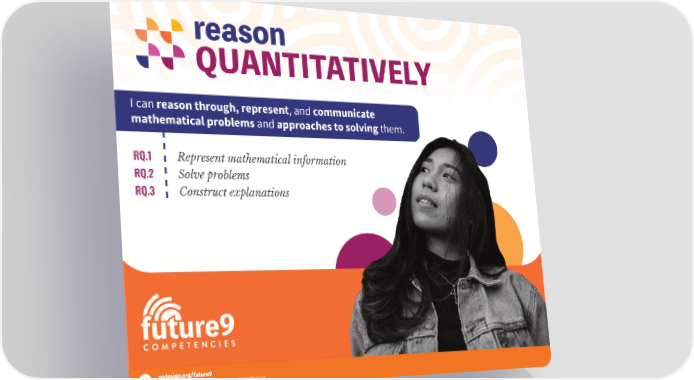 Future9 Framework Page 41 Page 43I can reason through, represent, and communicate mathematical problems and approaches to solving them. RQ.1 Represent mathematical information RQ.2 Solve problems RQ.3 Construct explanations 42