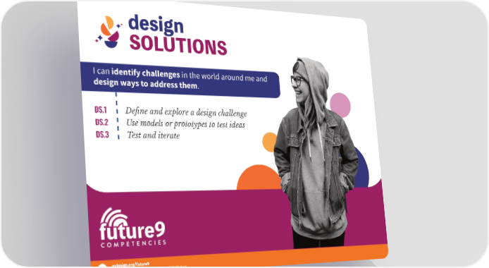 Future9 Framework Page 11 Page 13I can identify challenges in the world around me and design ways to address them. DS.1 De昀椀ne and explore a design challenge DS.2 Use models or prototypes to test ideas DS.3 Test and iterate 12
